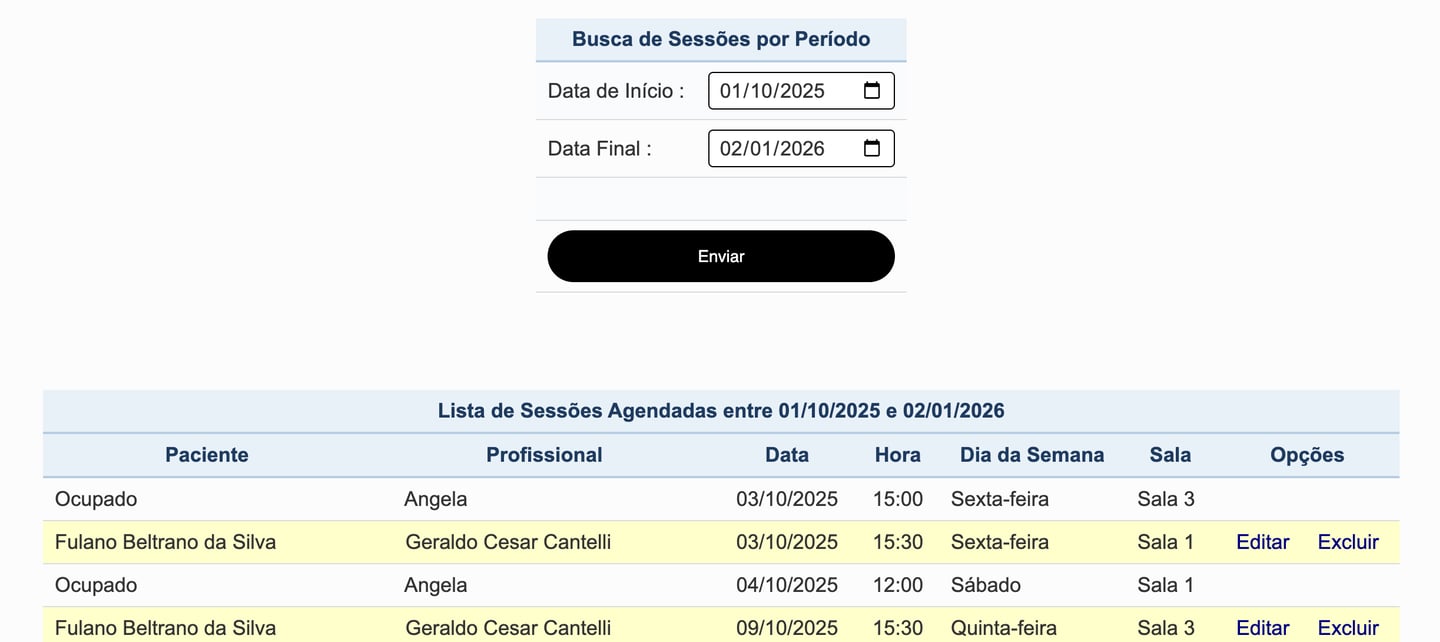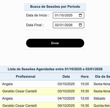 Listar Sessões por Período